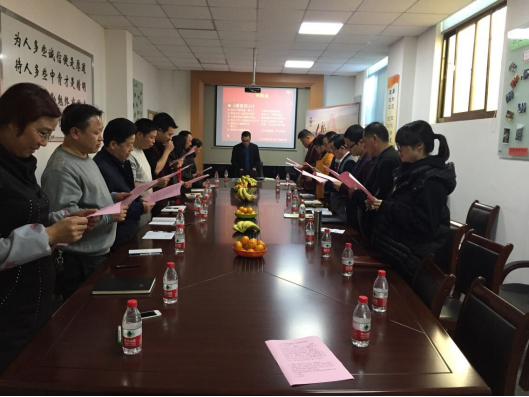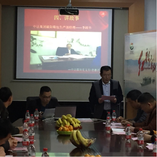 中法晨陽箱包生產部經理李聯華同志講述他的奮斗歷程,鼓勵在場的每位黨員要愛崗敬業,無私奉獻,努力做好自己的工作。