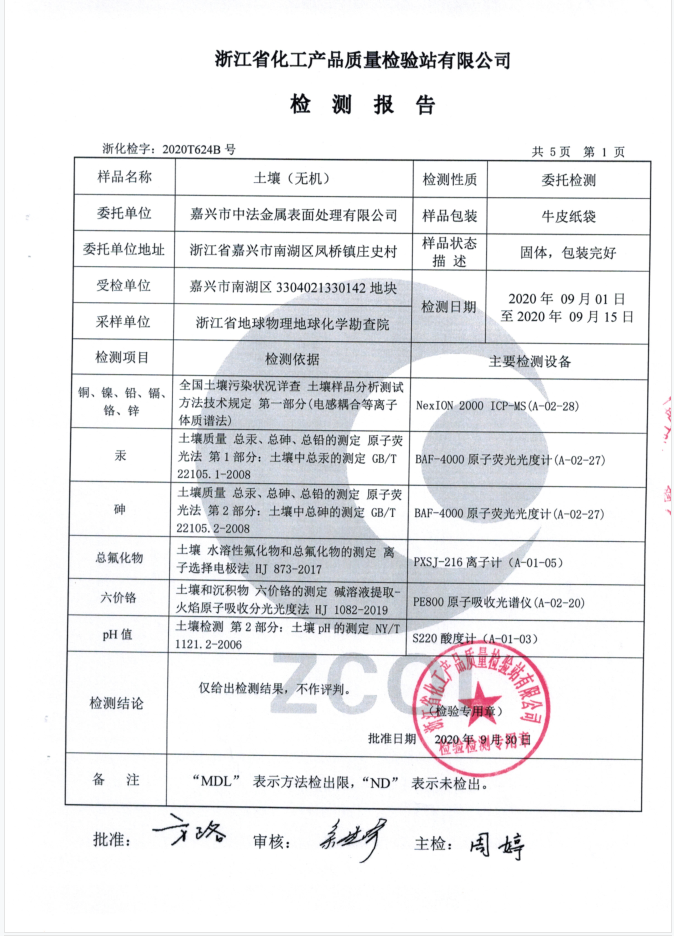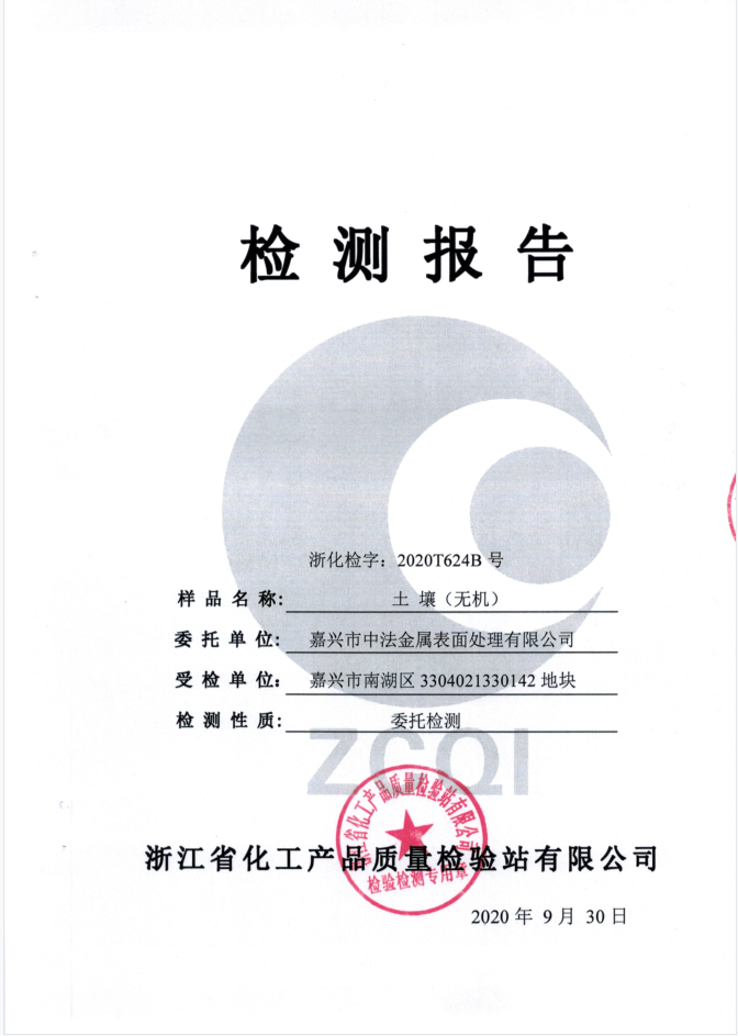 嘉興市中法金屬表面處理有限公司土壤(無機)檢測報告