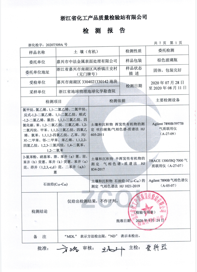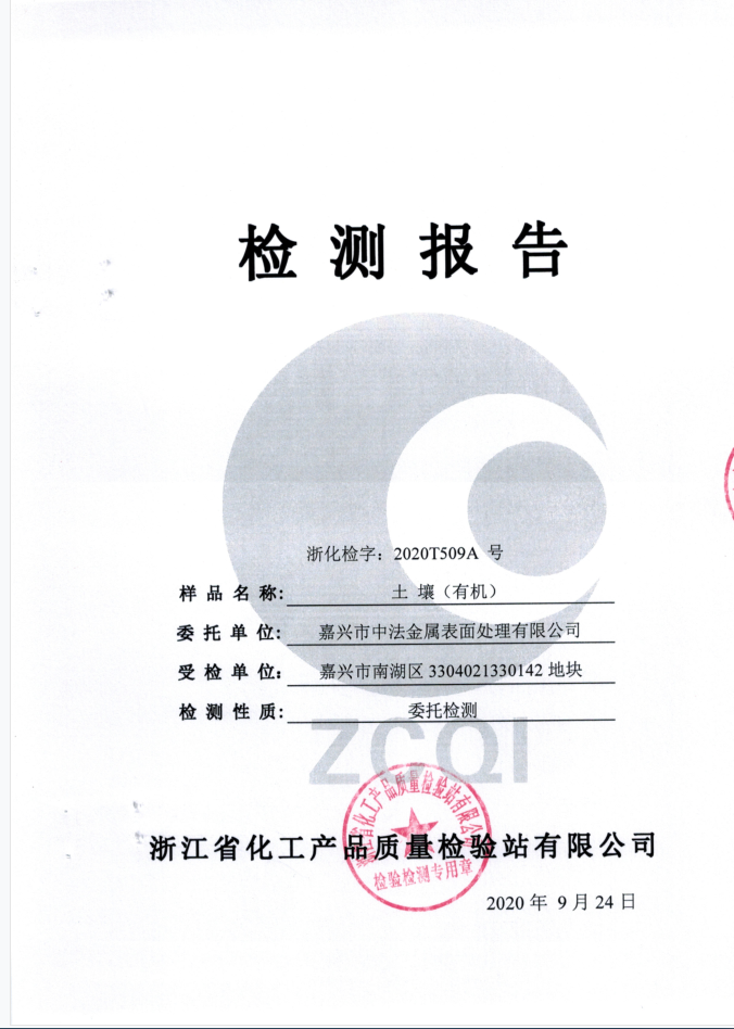 嘉興市中法金屬表面處理有限公司土壤(有機)檢測報告