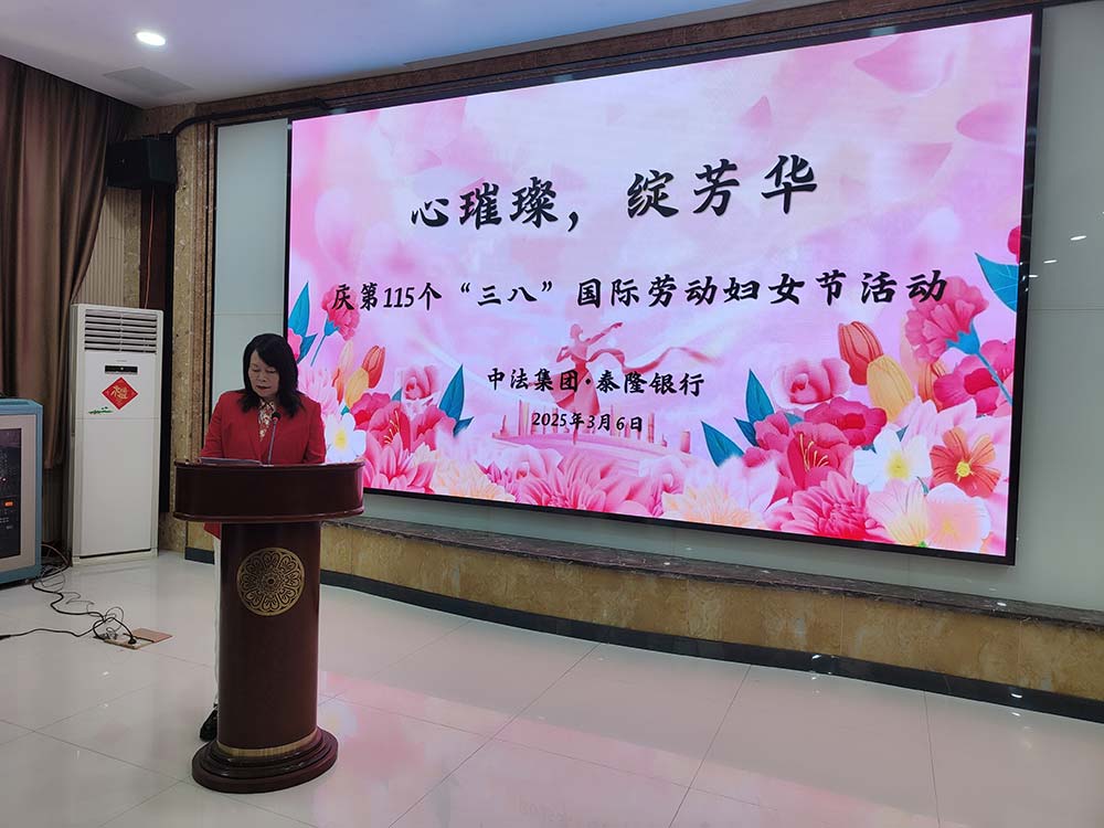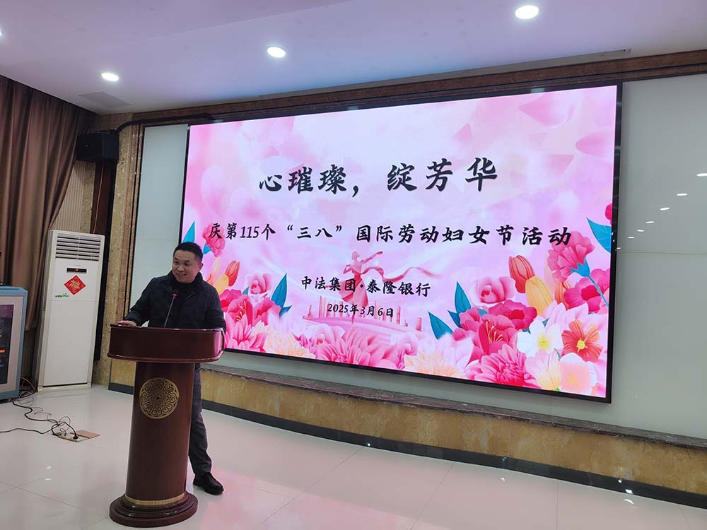 泰隆銀行鳳橋支行謝行長作了精彩講話,并向所有女性朋友們致以節日的問候和崇高的敬意。