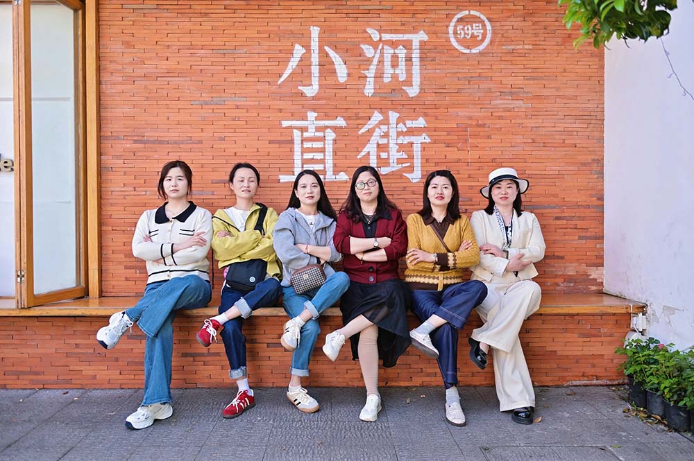 午后,我們踏入了小河直街歷史街區,這里以小河為中軸線,呈現出典型的一河兩街格局。白墻黑瓦的建筑錯落有致地分布在小河兩岸,仿佛一幅活生生的“小橋流水人家”江南水鄉畫卷。漫步其間,雕花木柱、花格窗、木樓梯等元素隨處可見,每一處細節都透露著清末民初的韻味,古樸而不失雅致。在這里,女企業家、女職工們不僅被這份歷史的沉淀所吸引,更被這里裝飾精美的打卡點所感染。她們或駐足于河畔,聆聽潺潺流水,品味精致美食;或走進小店,挑選幾件手工藝品作為紀念;或漫步古街,定格個性的瞬間,捕捉復古的浪漫情懷,詮釋歲月靜好。每個人的臉上都洋溢著輕松愉悅的笑容。