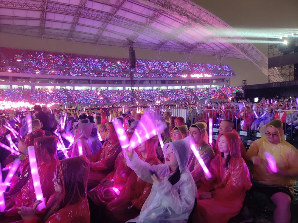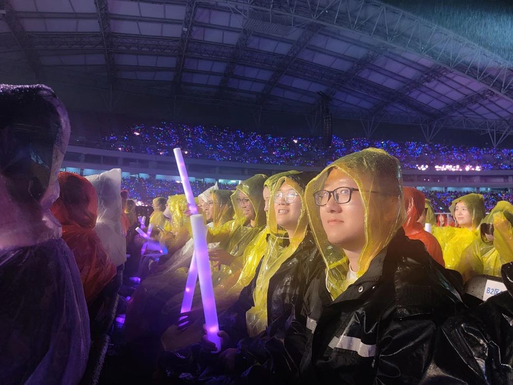 演唱會在雨中拉開帷幕,陳立農率先登場。他身著青春洋溢的服飾,活力四射地出現在舞臺中央。隨著《青春之名》的旋律響起,他清澈而富有穿透力的嗓音,瞬間點燃了現場氣氛。他邊唱邊與觀眾熱情互動,年輕的粉絲們激動得尖叫連連,手中的熒光棒隨著音樂節奏閃爍,宛如一片五彩斑斕的海洋。