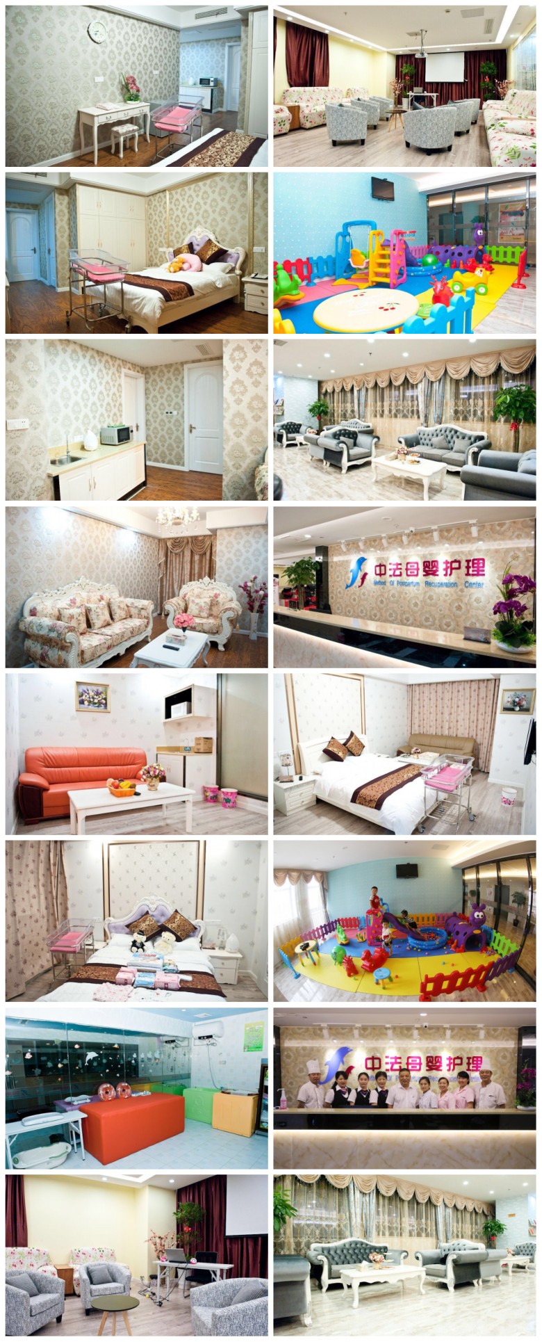 中法國際月子中心專業化的母嬰護理團隊將民間傳統月子照顧與現代母嬰科學護理有機結合,為產婦及新生兒提供高專業性、高安全性、高度信賴感的母嬰尊貴護理服務。 與全國多家婦保院進行長期友好深入的合作,資深醫療管理專家親力打造,國家級婦產科兒科主任定期巡診;國家級心理咨詢師為產婦疏導情緒,預防產后情緒疾病;省級名老中醫為護理中心產婦診脈,進行一對一體質辯證養生指導,高年資婦保院護理長為護理中心進行醫學級管理。讓天下的母嬰享受醫養結合、無微不至的高端服務。